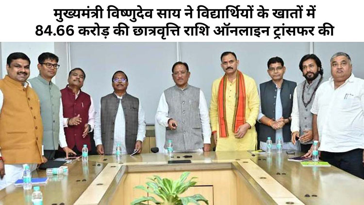 Read Moreमुख्यमंत्री विष्णुदेव साय ने राज्य के 1.98 लाख विद्यार्थियों के बैंक खातों में 84.66 करोड़ रुपये की शिष्यवृत्ति एवं छात्रवृत्ति राशि ऑनलाइन अंतरित की, जिससे विद्यार्थियों को पारदर्शी और समय पर आर्थिक सहायता सुनिश्चित हुई।