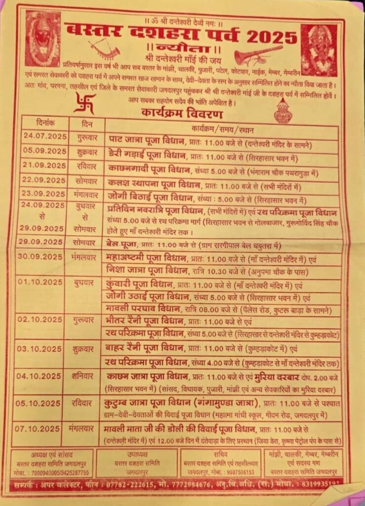 बस्तर दशहरा पर्व 2025 का कार्यक्रम
