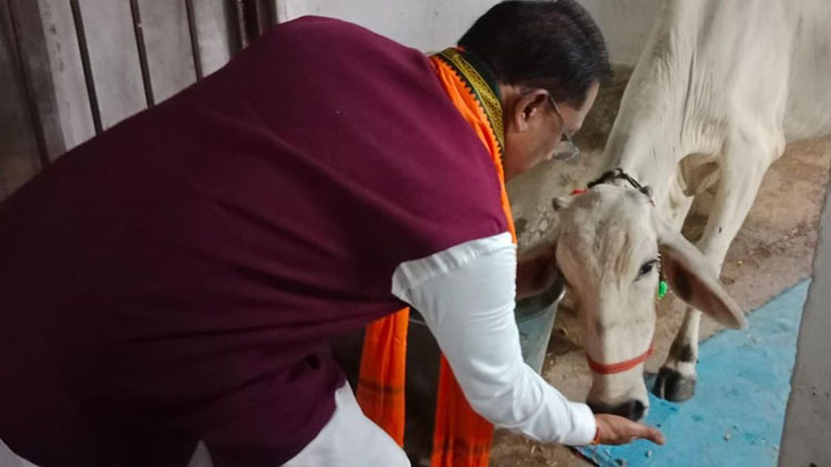 चन्द्रग्रहण पूर्व मुख्यमंत्री ने गौमाता को रोटी और गुड़ खिलाया, प्रदेशवासियों की सुख-समृद्धि की कामना