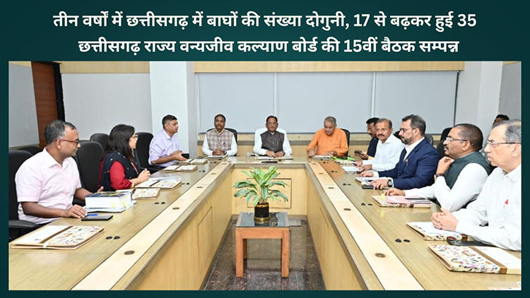 रायपुर, 09 सितंबर 2025/ छत्तीसगढ़ में बाघों की संख्या पिछले तीन वर्षों में दोगुनी हो गई है। वर्ष 2022 में जहां बाघों की संख्या 17 थी, वहीं अप्रैल 2025 के सर्वेक्षण में यह बढ़कर 35 हो गई। यह जानकारी नवा रायपुर स्थित महानदी भवन में मुख्यमंत्री विष्णु देव साय की अध्यक्षता में आयोजित छत्तीसगढ़ राज्य वन्यजीव कल्याण बोर्ड की 15वीं बैठक में दी गई।