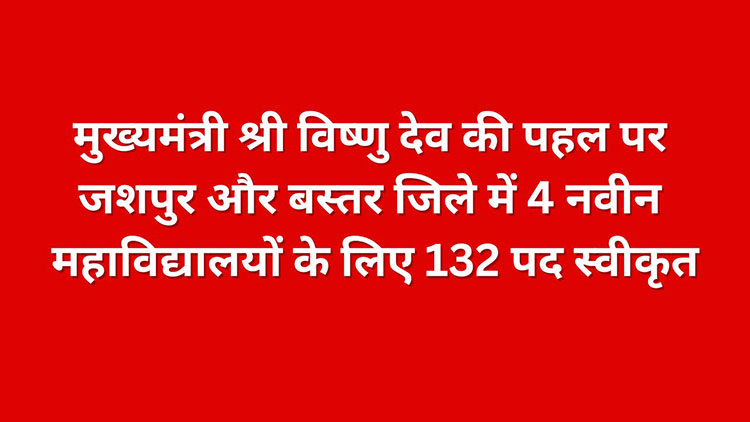 मुख्यमंत्री श्री विष्णु देव की पहल पर जशपुर और बस्तर जिले में 4 नवीन महाविद्यालयों के लिए 132 पद स्वीकृत