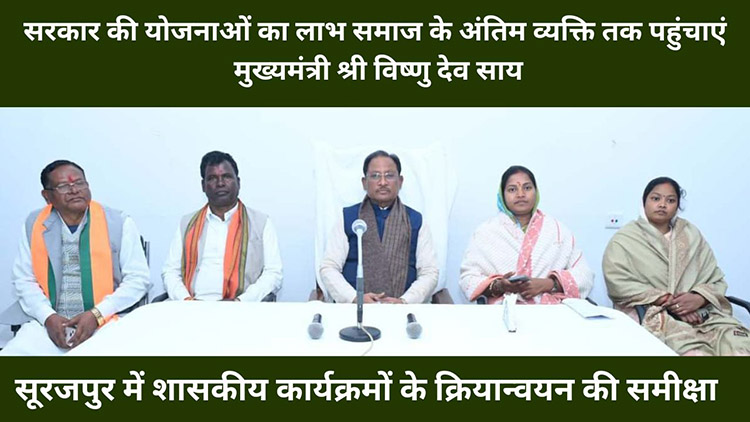 मुख्यमंत्री विष्णु देव साय ने गुरुवार को सूरजपुर जिले में विभिन्न शासकीय योजनाओं और कार्यक्रमों के क्रियान्वयन की समीक्षा की। इस दौरान उन्होंने अधिकारियों को आवश्यक दिशा-निर्देश दिए। उन्होंने कलेक्टर को निर्देशित किया कि चाँदनी बिहारपुर जैसे दूरस्थ अंचलों की बुनियादी आवश्यकताओं को ध्यान में रखते हुए ठोस प्रस्ताव तैयार कर शासन को भेजें, ताकि इन क्षेत्रों में बेहतर सुविधाएं उपलब्ध कराई जा सकें।