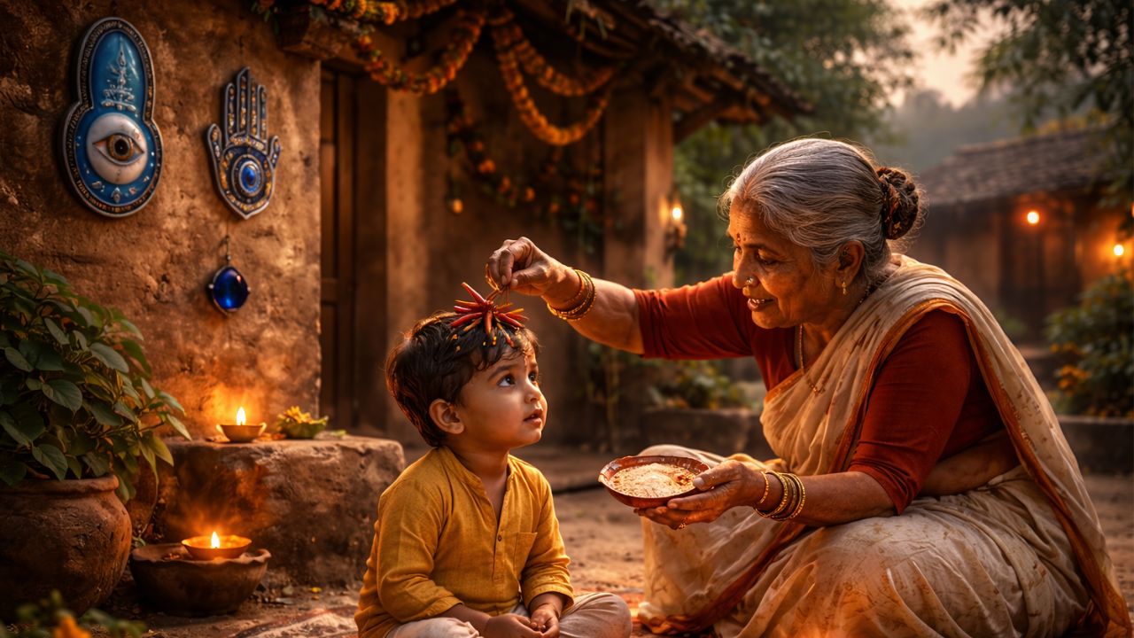 जब मां अपने बच्चे के माथे पर काला टीका लगाती है, तो वह केवल एक बिंदु नहीं बनाती। वह अपने स्नेह की परिधि खींचती है। जब दादी नमक और मिर्च से उतारती हैं, तो वह केवल अनुष्ठान नहीं करतीं। वह अपनी चिंता को शांत करती हैं।