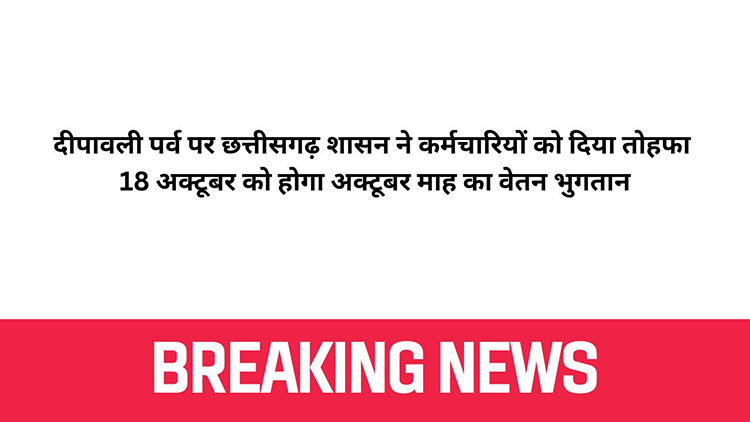 दीपावली पर्व पर छत्तीसगढ़ शासन ने कर्मचारियों को दिया तोहफा : 18 अक्टूबर को होगा अक्टूबर माह का वेतन भुगतान