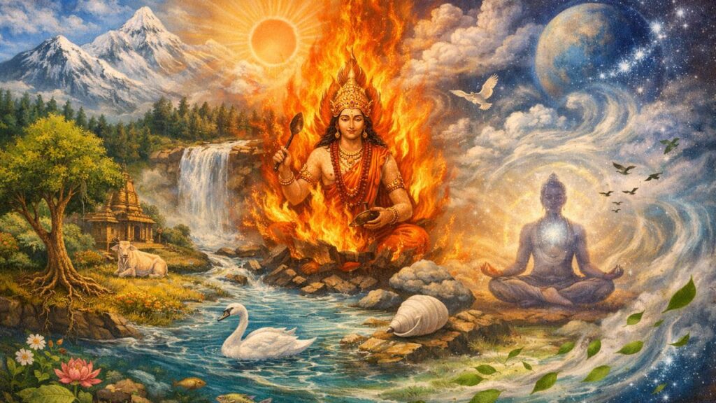 पंचमहाभूत हमें सिखाते हैं कि प्रकृति का संतुलन ही जीवन का संतुलन है। भूमि जल को धारण करती है, जल अग्नि को संतुलित करता है, अग्नि वायु को प्रभावित करती है और वायु आकाश में प्रवाहित होती है। यह परस्पर संबंध ही सृष्टि को संचालित करता है।