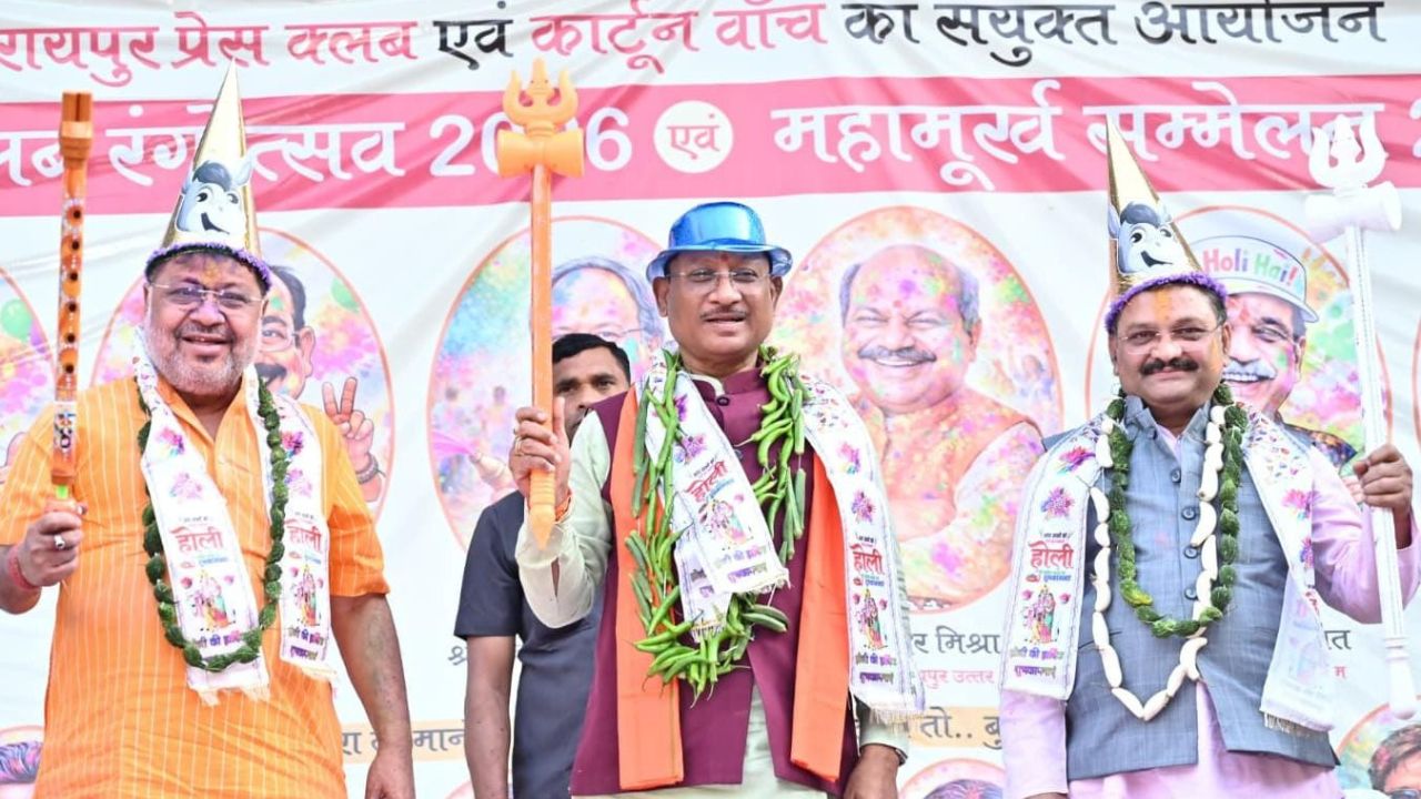 रायपुर प्रेस क्लब के रंगोत्सव और महामूर्ख सम्मेलन में शामिल हुए मुख्यमंत्री विष्णु देव साय, नगाड़ा बजाकर बढ़ाया उत्साह