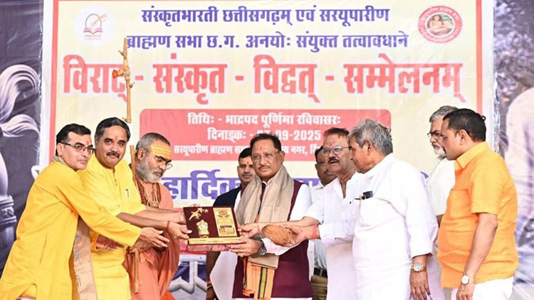 रायपुर, 07 सितंबर 2025/ भारतीय संस्कृति की आत्मा संस्कृत में निहित है, जो हमें विश्व पटल पर विशिष्ट पहचान प्रदान करती है। संस्कृत भाषा व्याकरण, दर्शन और विज्ञान की आधारशिला है, जो तार्किक चिंतन को बढ़ावा देती है। यह विचार मुख्यमंत्री विष्णुदेव साय ने राजधानी रायपुर के संजय नगर स्थित सरयूपारीण ब्राह्मण सभा भवन में आयोजित विराट संस्कृत विद्वत्-सम्मेलन को संबोधित करते हुए व्यक्त किए।
