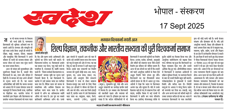 आज जो संसार हमें सुव्यवस्थित और सुसज्जित दिखाई देता है, उसकी नींव शिल्पकारों के श्रम, त्याग और कौशल में छिपी है। वे साधक की तरह अपने औजारों से सृजन करते रहे हैं। यह कहना अतिशयोक्ति नहीं होगी कि मानव सभ्यता को आकार देने में उनका योगदान उतना ही महत्वपूर्ण है जितना किसी राजा, दार्शनिक या वैज्ञानिक का।